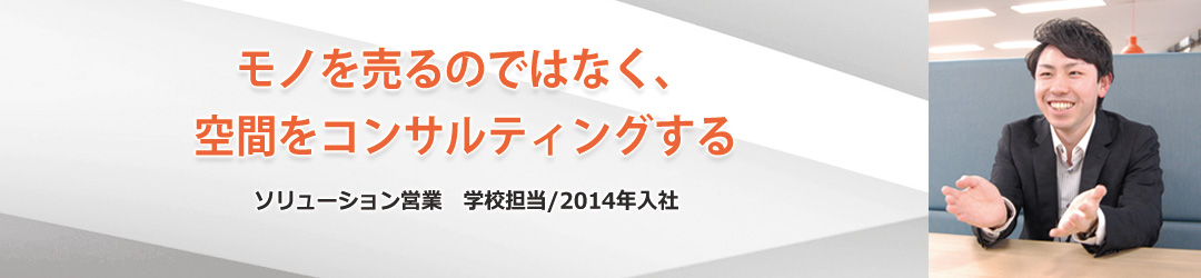 製品を1つ購入いただくことも学修環境の提案を行うことも同じ熱意を持って取り組んでいます。1つ1つ丁寧に対応することで、仕事に取り組む姿勢や誠意をお客様が評価してくださり、次のお仕事をいただけたり、相談していただくことも多いです。